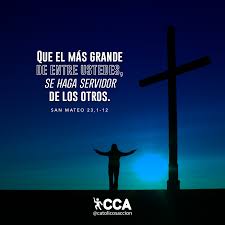 Entonces Jesús se dirigió a la gente y a sus discípulos y les dijo: «En la cátedra de Moisés se han sentado los escribas y los fariseos. Haced, pues, y observad todo lo que os digan; pero no imitéis su conducta, porque dicen y no hacen. Atan cargas pesadas y las echan a las espaldas de la gente, pero ellos ni con el dedo quieren moverlas. Todas sus obras las hacen para ser vistos por los hombres; se hacen bien anchas las filacterias y bien largas las orlas del manto; quieren el primer puesto en los banquetes y los primeros asientos en las sinagogas, que se les salude en las plazas y que la gente les llame "Rabbí". El mayor entre vosotros será vuestro servidor. Pues el que se ensalce, será humillado; y el que se humille, será ensalzado.