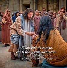 Pero, como ellos insistían en preguntarle, se incorporó y les dijo: «Aquel de vosotros que esté sin pecado, que le arroje la primera piedra.»